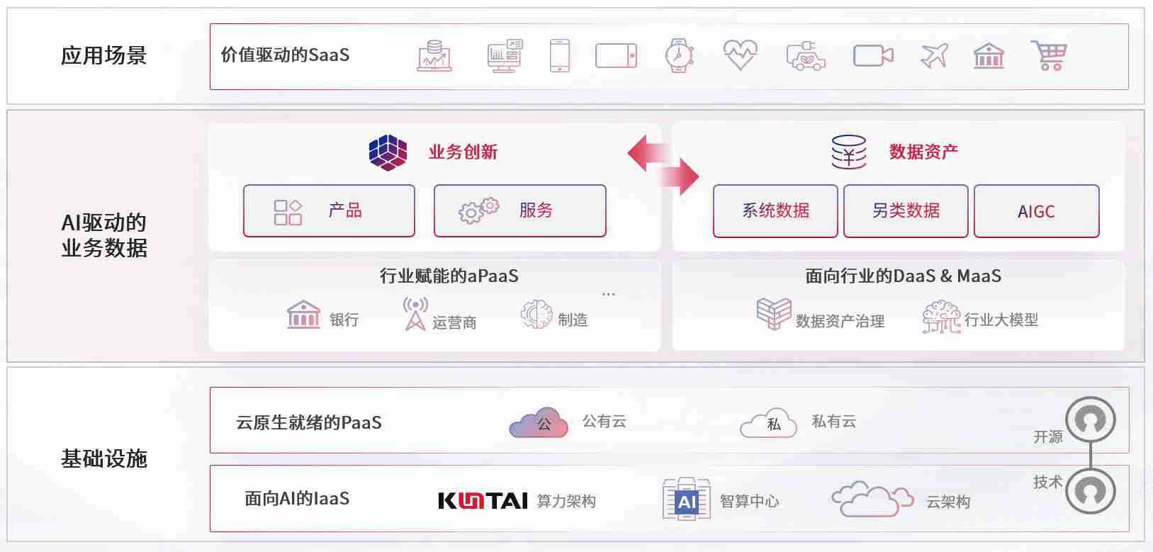 数字时代,,,围绕企业数字化转型的关键要素,,,PA国际厅数码开创性的提出数云融合战略和技术体系框架,,,着力在云原生、、、数字原生、、、AI原生和信创产业上架构产品和服务能力,,,为处在不同数字化转型阶段的快消零售、、、、汽车、、、金融、、、医疗、、、政企、、教育、、运营商等行业客户提供泛在的敏捷IT能力和融合的数据驱动能力,,,,构建跨界融合创新的数字业务场景和新业务模式,,,助力企业级客户建立面向未来的核心能力和竞争优势,,,全面推动社会的数字化、、、智能化转型升级。。。