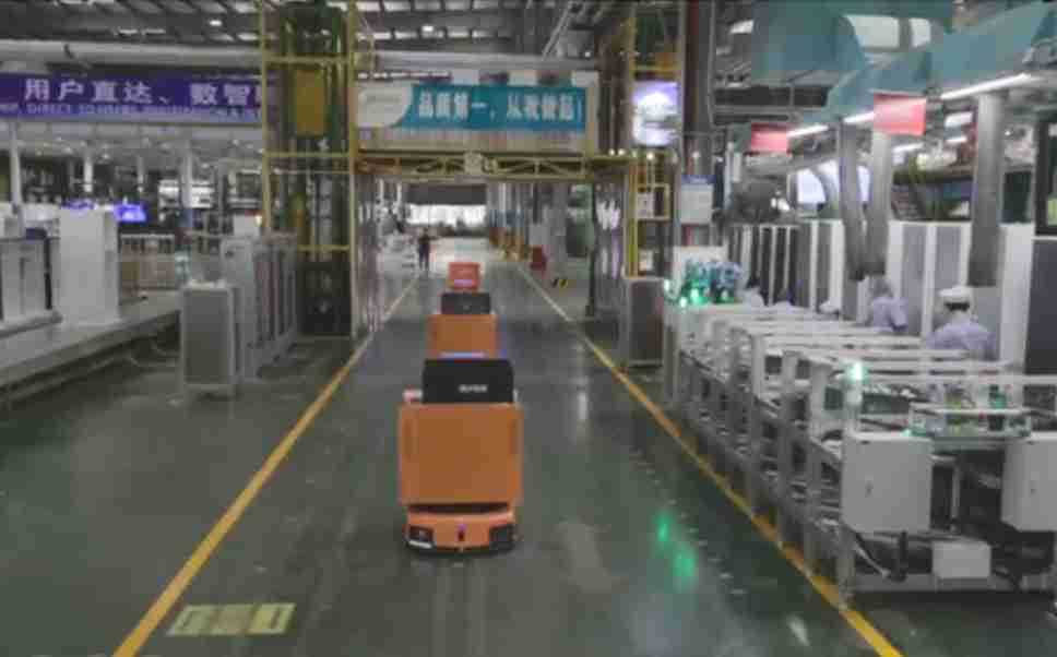为车载冰箱物流配送打造的智能解决方案,,,包含产中物流通过潜伏举升AMR搬运至线边,,产后成品物流智能仓储,,,流程包含产中物流智能齐套入库,,,线边安灯叫料AMR智能配送至线边,,,成品入库、、、、出库,,通过无人堆高车机器人,,,智能仓储管理替代人工作业管理,,,实现更高存储、、、更高效率、、更具柔性化的解决方案。。。。